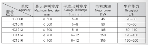 HC series new high-eficiency crusher is suitable for building materials, mining and other industries. it can crush hard and brittle ma爱erials such as limesione, coal gangue, gypsum, dolomite, eic, lts characieristics are as lollows: the feed sizeis 400-600 mm, and it i卓not blocked or stuck, The average grain size of the discharged material is les than 10 mm, and less than 3-5 mm accounts for 60%