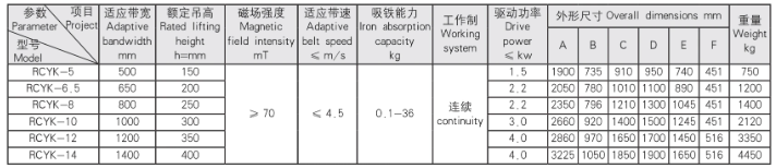 The specially designed armored belt can effectively prevent the damage of sharpferromagnetic impurities to the belt, and the operation is economical .The magnetic field strength at the rated height is high, the gradient is large, and thesuction is strong.